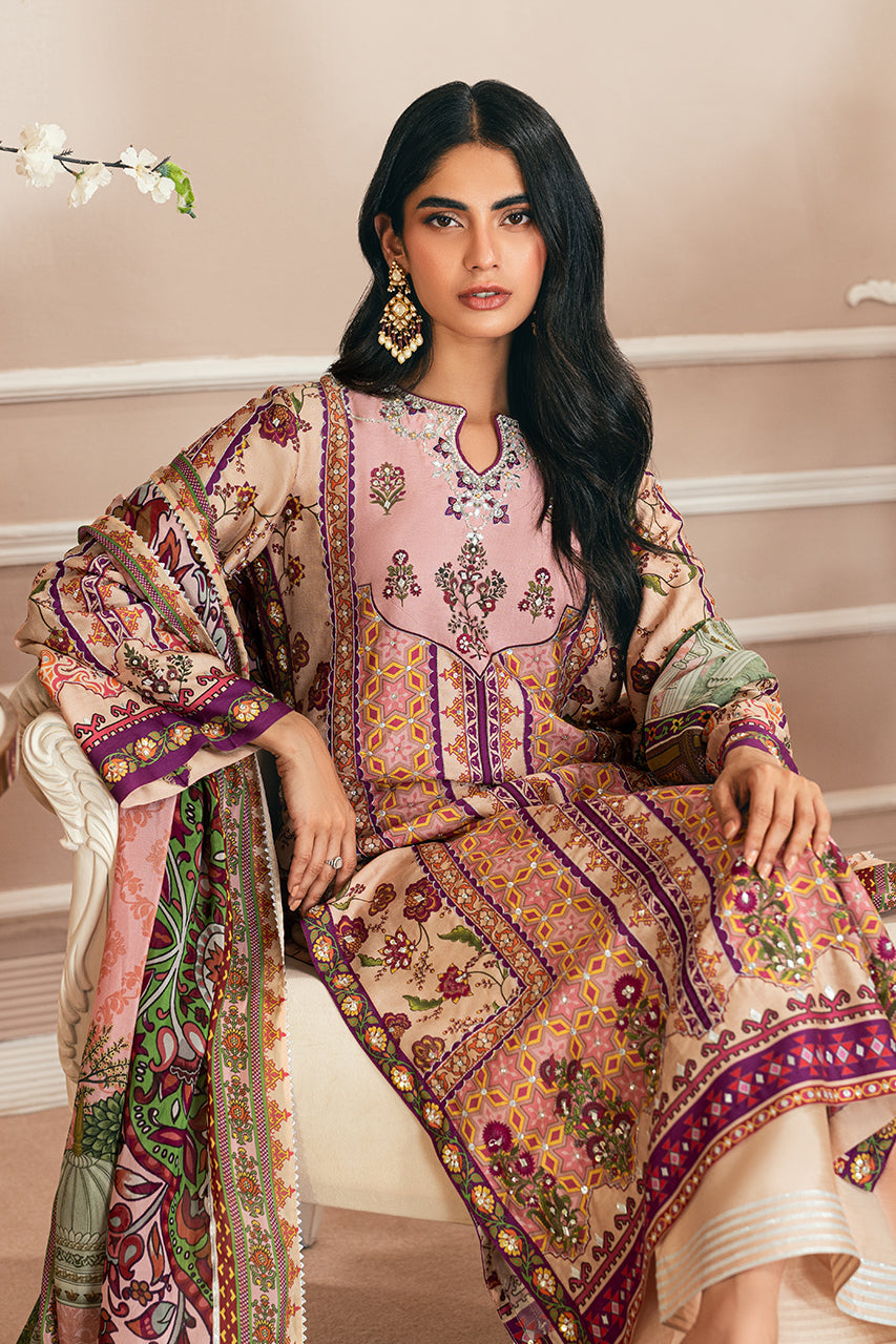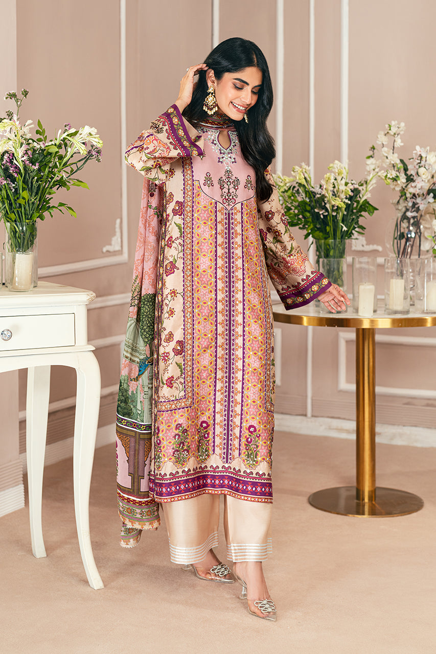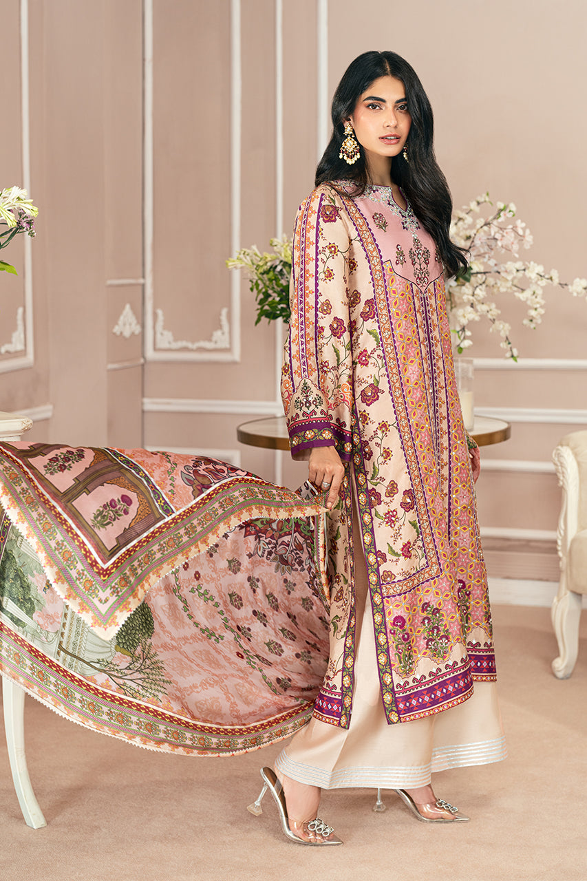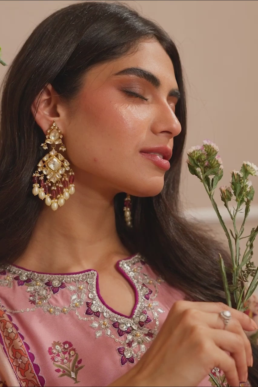 Step into a vision of peachy pink with a vibrant burst of colors! This peachy pink long silk shirt radiates festive charm with its handworked neckline and intricate digital patterns. The full sleeves elegantly enhance its soft, relaxed silhouette, while the gota-trimmed izaar pants add a touch of delicate artistry. The ethereal dupatta, adorned with stunning floral and tropical prints, brings a captivating element that’s sure to steal hearts. This outfit is the perfect blend of laid-back elegance and ultra-chic style, ideal for any festive occasion.
