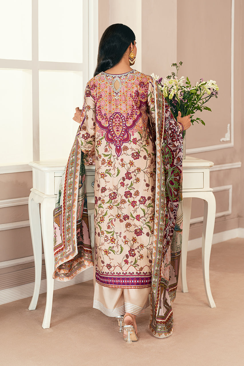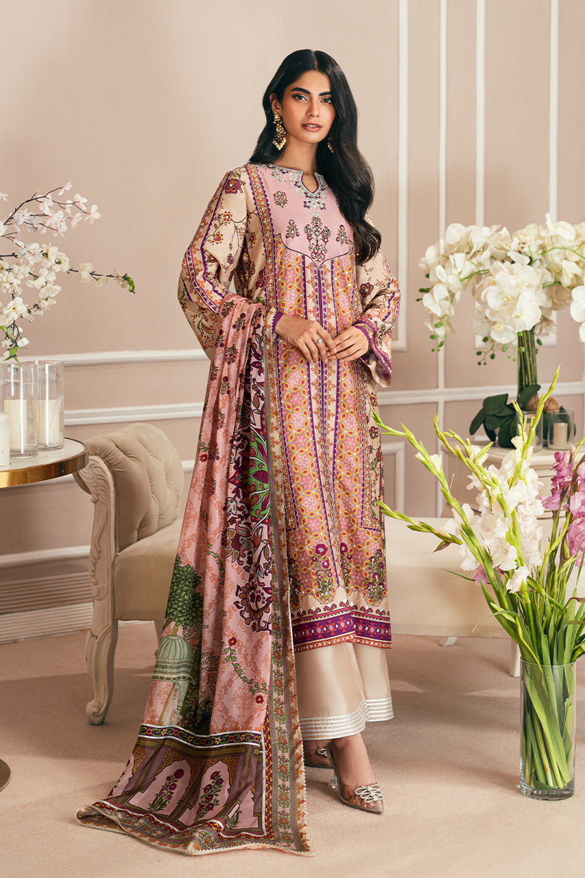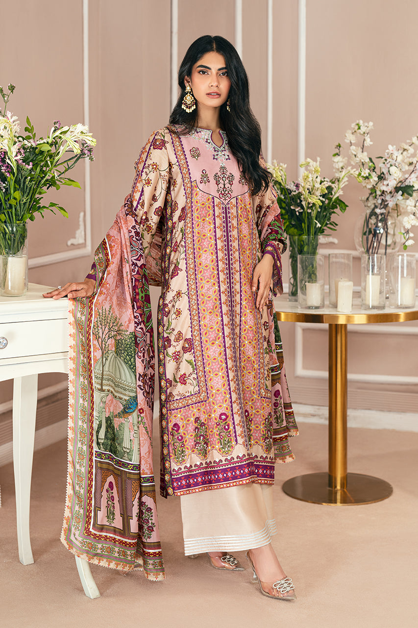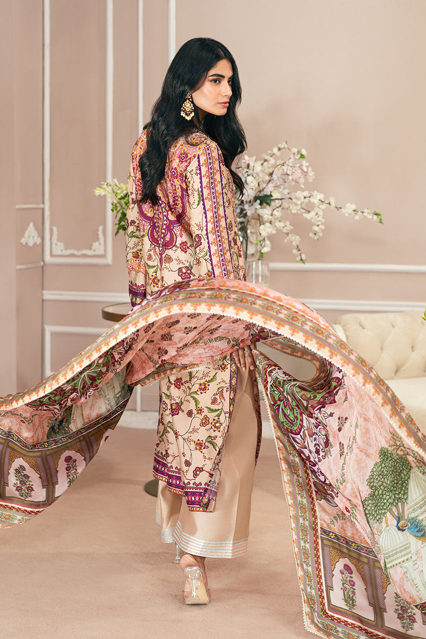 Step into a vision of peachy pink with a vibrant burst of colors! This peachy pink long silk shirt radiates festive charm with its handworked neckline and intricate digital patterns. The full sleeves elegantly enhance its soft, relaxed silhouette, while the gota-trimmed izaar pants add a touch of delicate artistry. The ethereal dupatta, adorned with stunning floral and tropical prints, brings a captivating element that’s sure to steal hearts. This outfit is the perfect blend of laid-back elegance and ultra-chic style, ideal for any festive occasion.