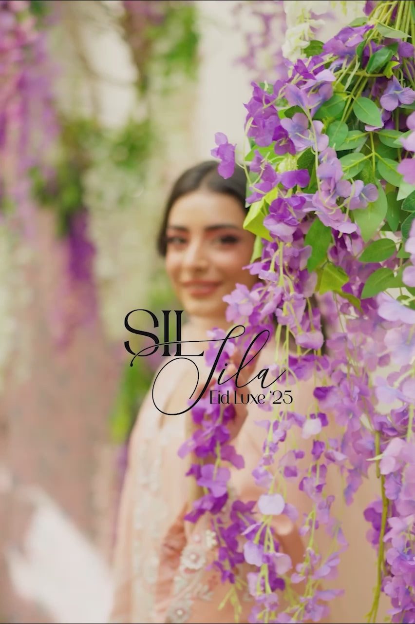 For a stunning summer look, opt for a Peach Pure Khaddi Silk long shirt featuring exquisite heavy embroidery on the neckline and throughout the shirt. The design includes a double embroidered border on the sides of the Izzar pants enhancing the overall look of the dress. Pair it with a pure organza dupatta with lace work.