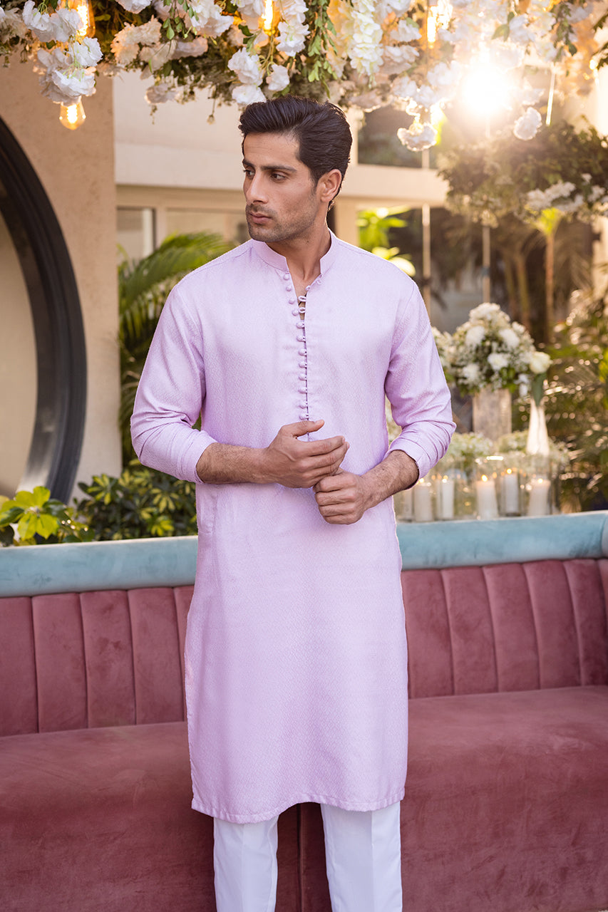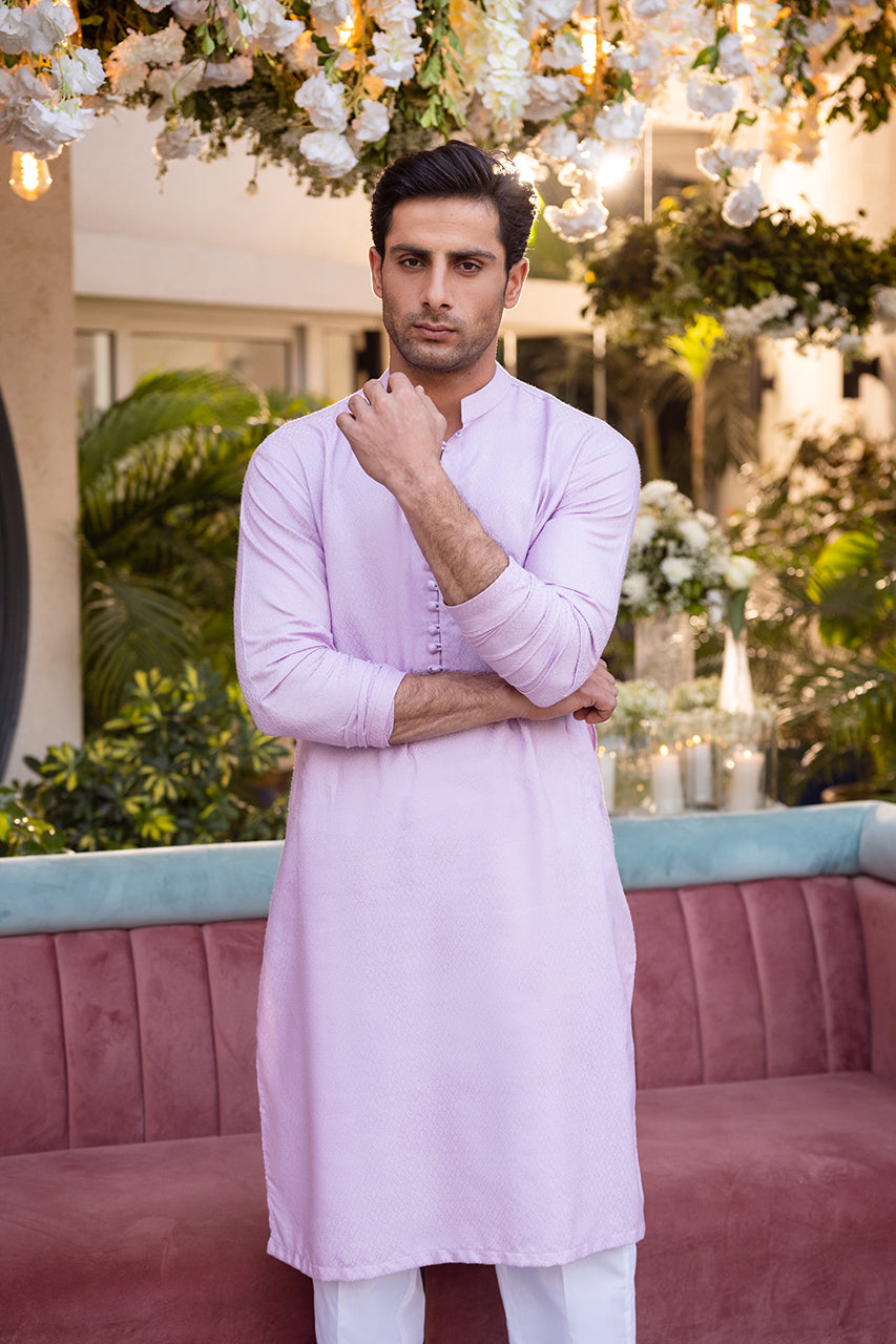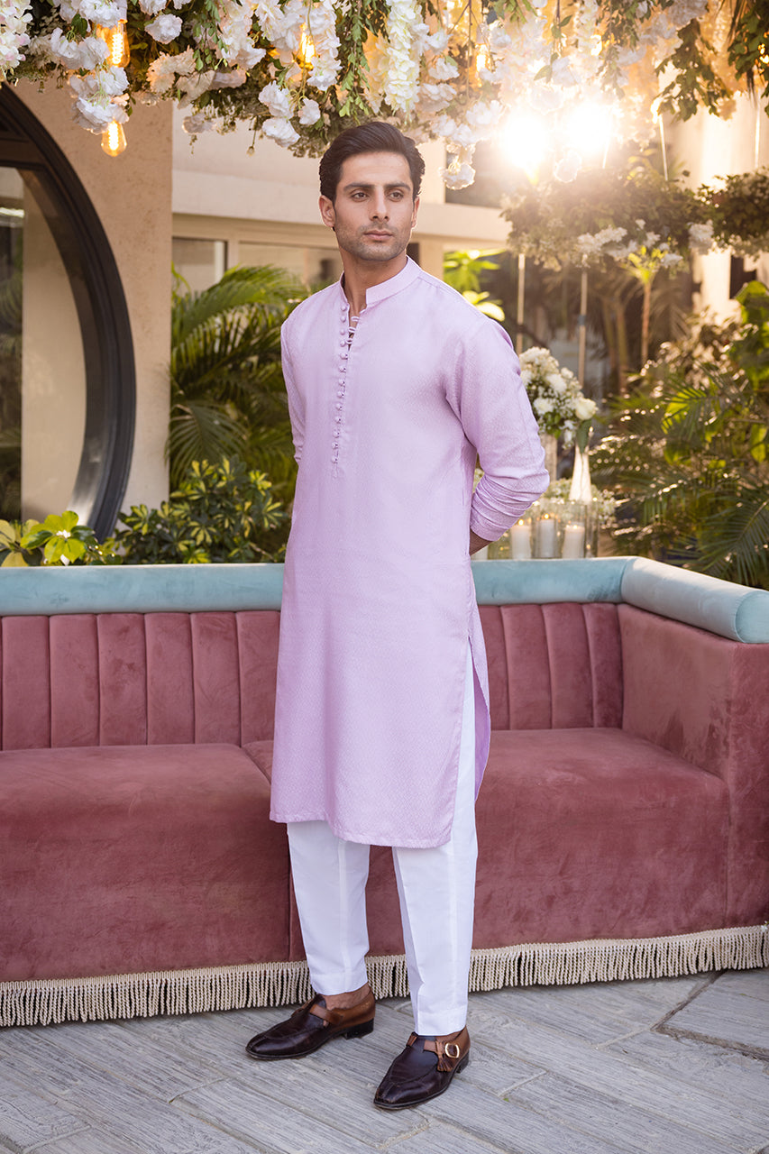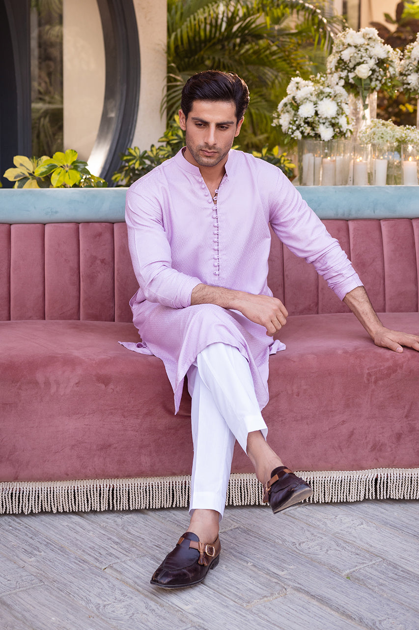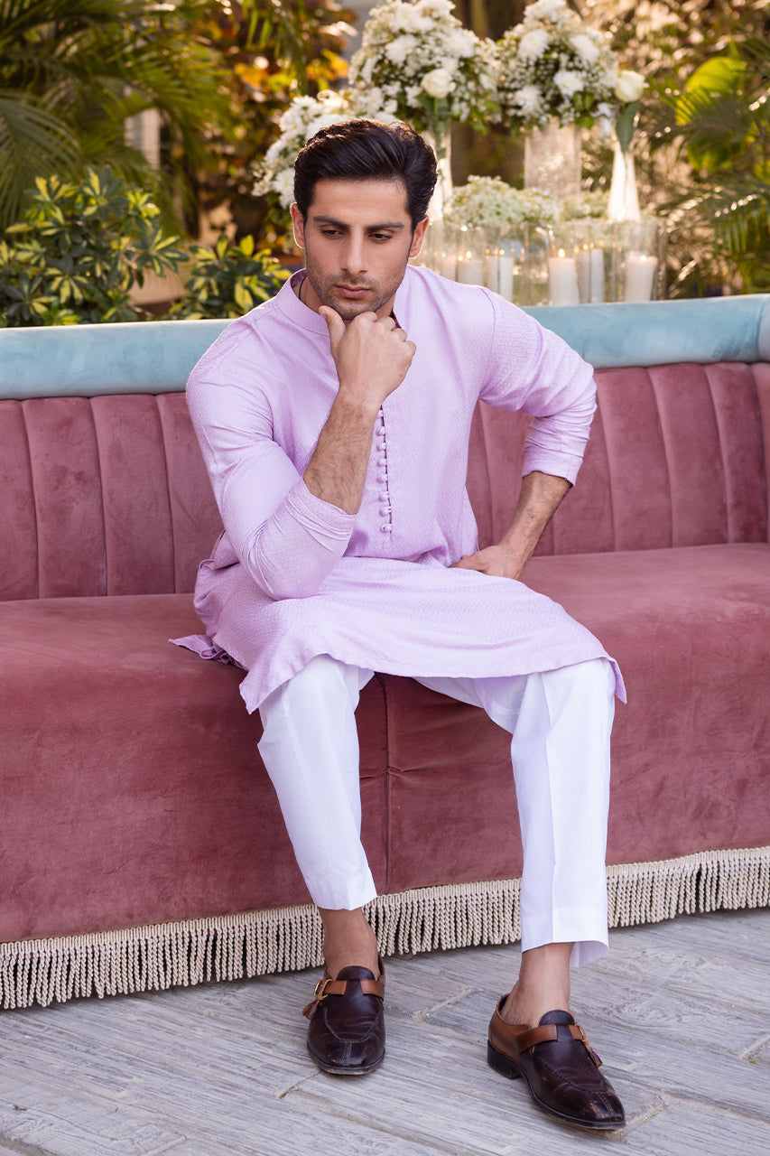 Experience sophistication with our exclusive in-house cotton kurta, featuring intricate textured detailing. Paired elegantly with white pants, it defines modern masculinity at its finest.