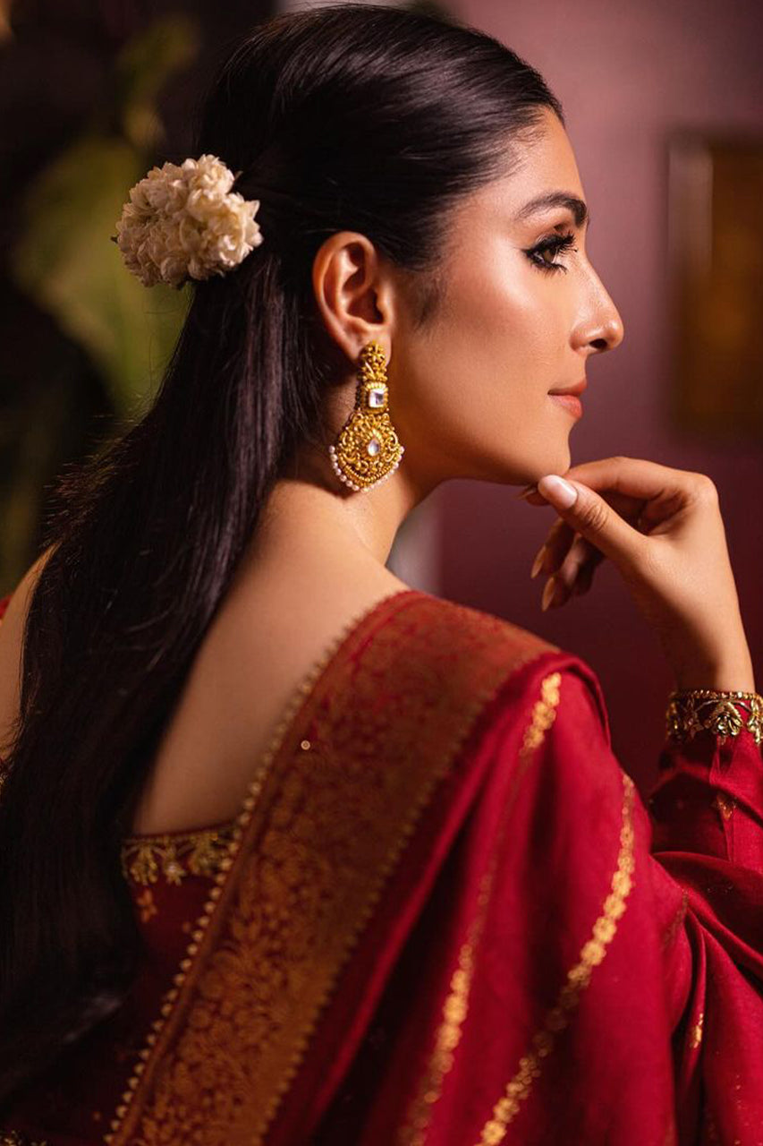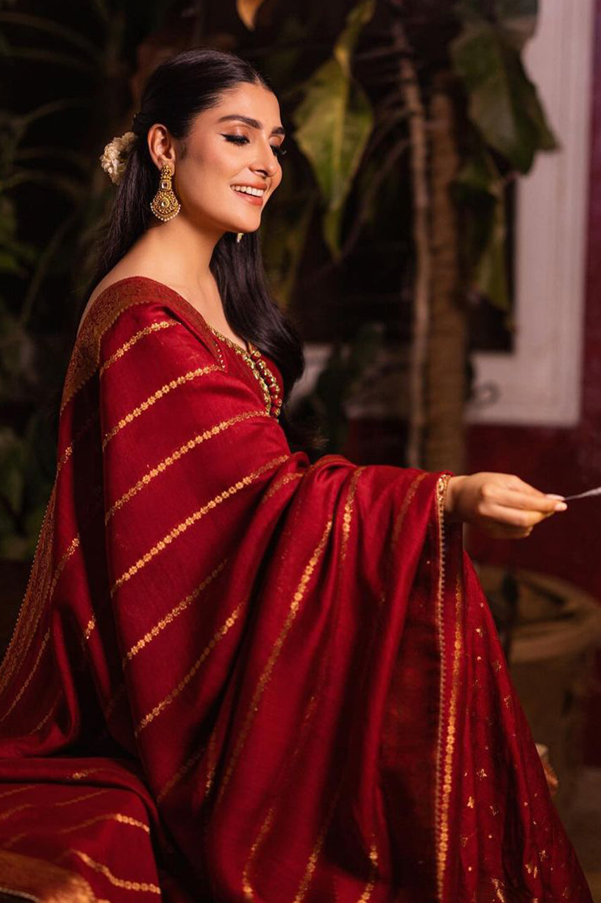 Maroon long gown with full sleeves that has embellished neckline and boties all over the gown. Along with it maroon duppatta with lace...