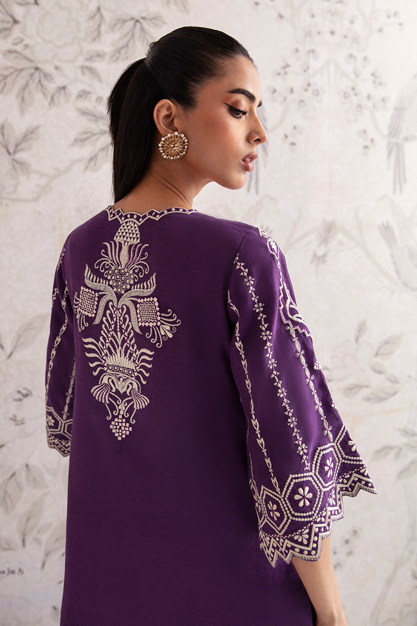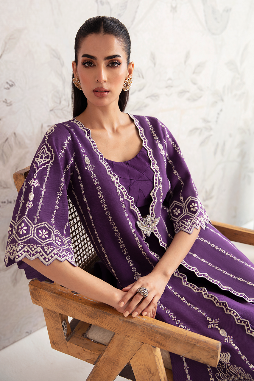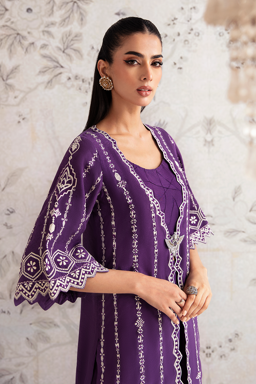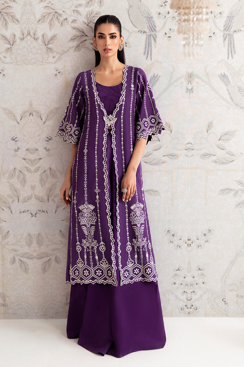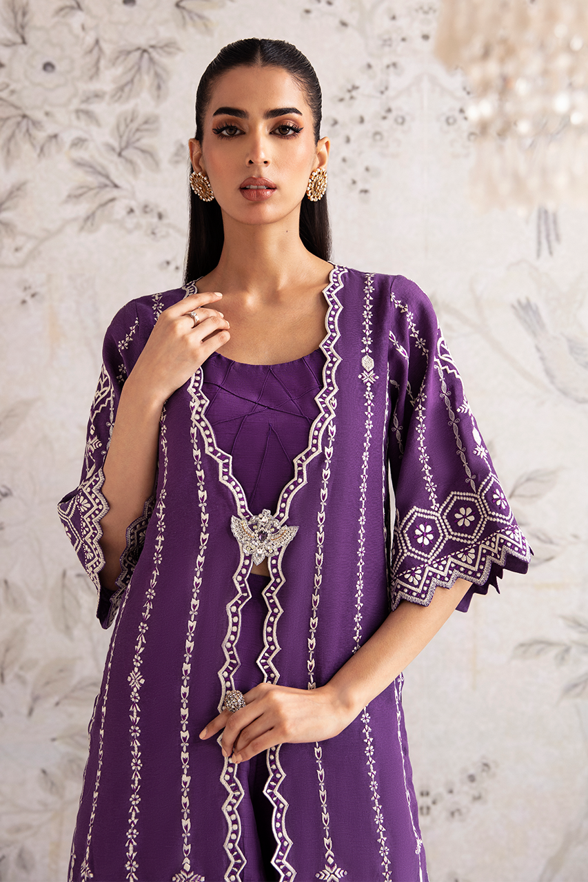 Crafted with passion and precision, Carmen embodies the fusion of rich purple khadi net and embroidery. The jacket features intricate embroidery and quarter-bell...