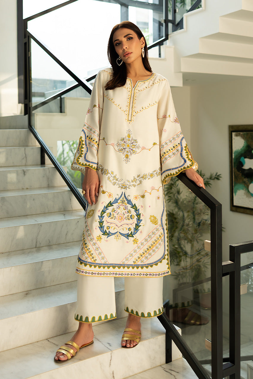 Lumira Izaar features embroidered edging, defined by its thoughtful detailing and refined wearability.