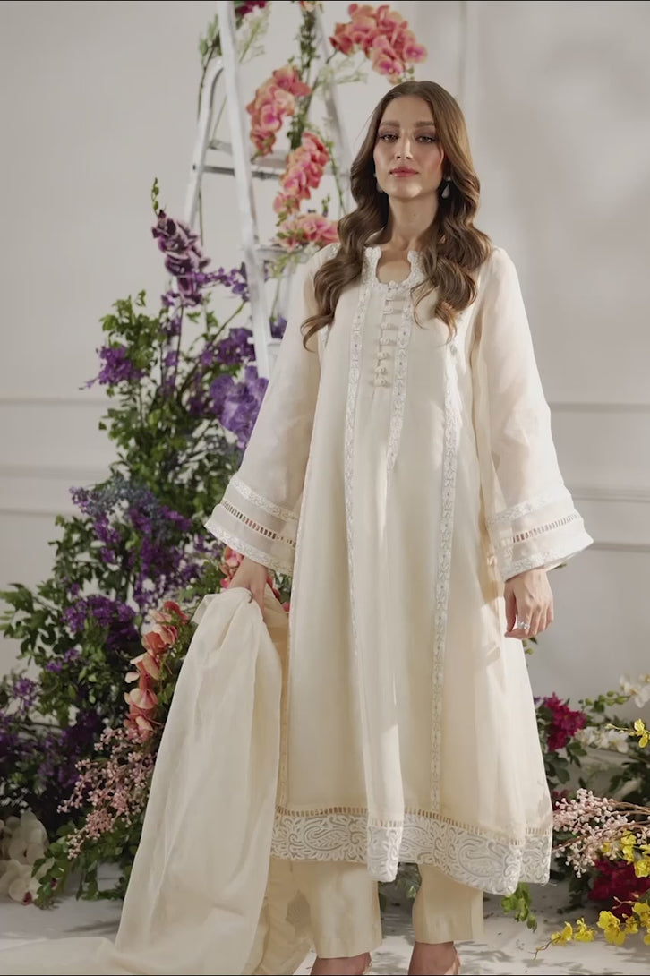 Elegance never goes out of style, and that's exactly what this Primrose embodies. The beige cotton net kalidar shirt is designed with embroidered panels that evoke a sense of softness and femininity. And with its elegant frill cotton net dupatta, Primrose is the perfect combination of style and comfort