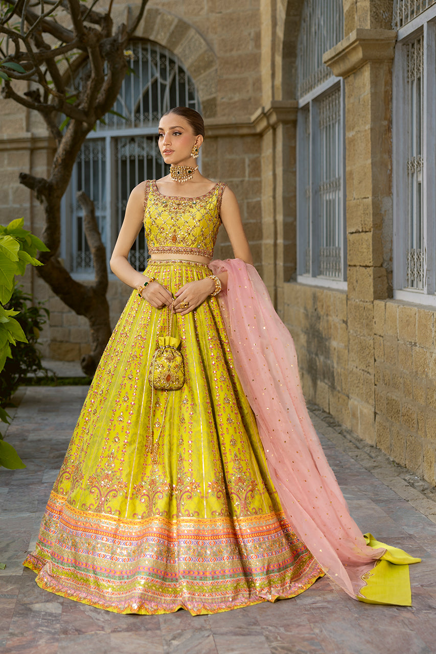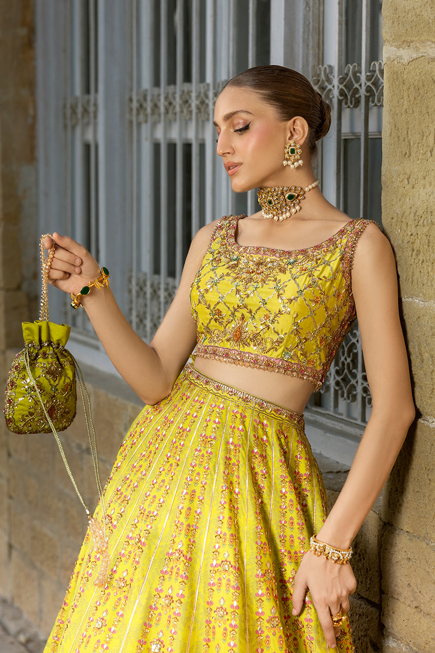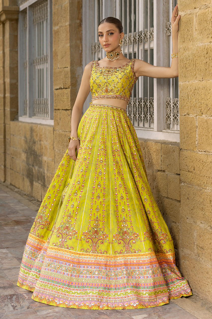 Bold yet beautifully balanced, this neon green digital silk bodice captivates with intricate all-over embroidery, blending modern vibrance with traditional artistry. The back features refined cutwork, accentuated with tassel hangings that lend movement and flair to the silhouette.